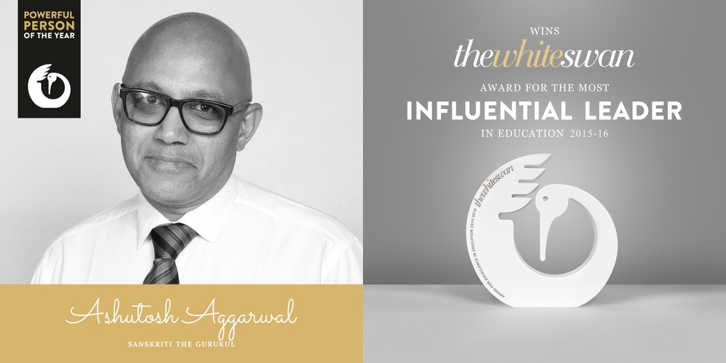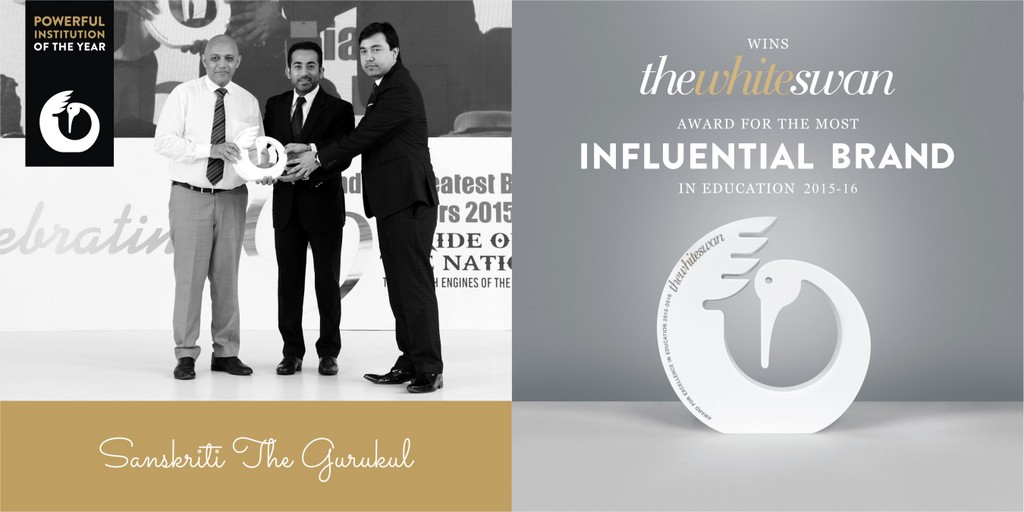 Ashutosh Agarwal, Founder, Sanskriti The Gurukul, has been honoured with the country’s finest award in education, the ‘White Swan Award’ for the ‘Most Influential Leader 2015-16’, and Sanskriti The Gurukul has been awarded with ‘The White Swan Award’ for the ‘Most Influential Brand 2015-16’, at the Taj Lands End, Mumbai on 3rd September, 2016.