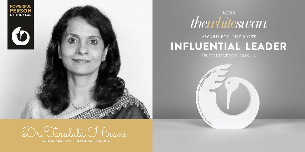 Dr. Tarulata Hirani, Principal, Ahmedabad International School, has been honoured with the country’s finest award in education, the ‘White Swan Award’ for the ‘Most Influential Leader 2015-16’, and Ahmedabad International School has been awarded with ‘The White Swan Award’ for the ‘Most Influential Brand 2015-16’, at the Taj Lands End, Mumbai on 3rd September, 2016.
