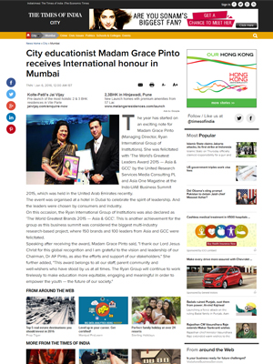 City educationist Madam Grace Pinto receives International honour in Mumbai