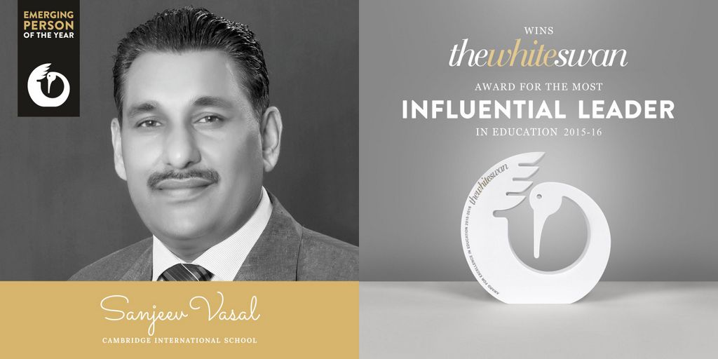 Mr. Sanjeev Vasal, Proprieter, Cambridge International School, has been honoured with the country’s finest award in education, the ‘White Swan Award’ for the ‘Most Influential Leader 2015-16’, and Cambridge International School has been awarded with ‘The White Swan Award’ for the ‘Most Influential Brand 2015-16’, at the Taj Lands End, Mumbai on 3rd September, 2016.
