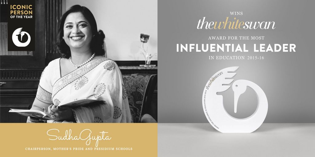Sudha Gupta, Chairperson, Presidium, has been honoured with the country’s finest award in education, the ‘White Swan Award’ for the ‘Most Influential Leader 2015-16’, and Presidium Schools have been awarded with ‘The White Swan Award’ for the ‘Most Influential Brand 2015-16’, at the Taj Lands End, Mumbai on 3rd September, 2016.